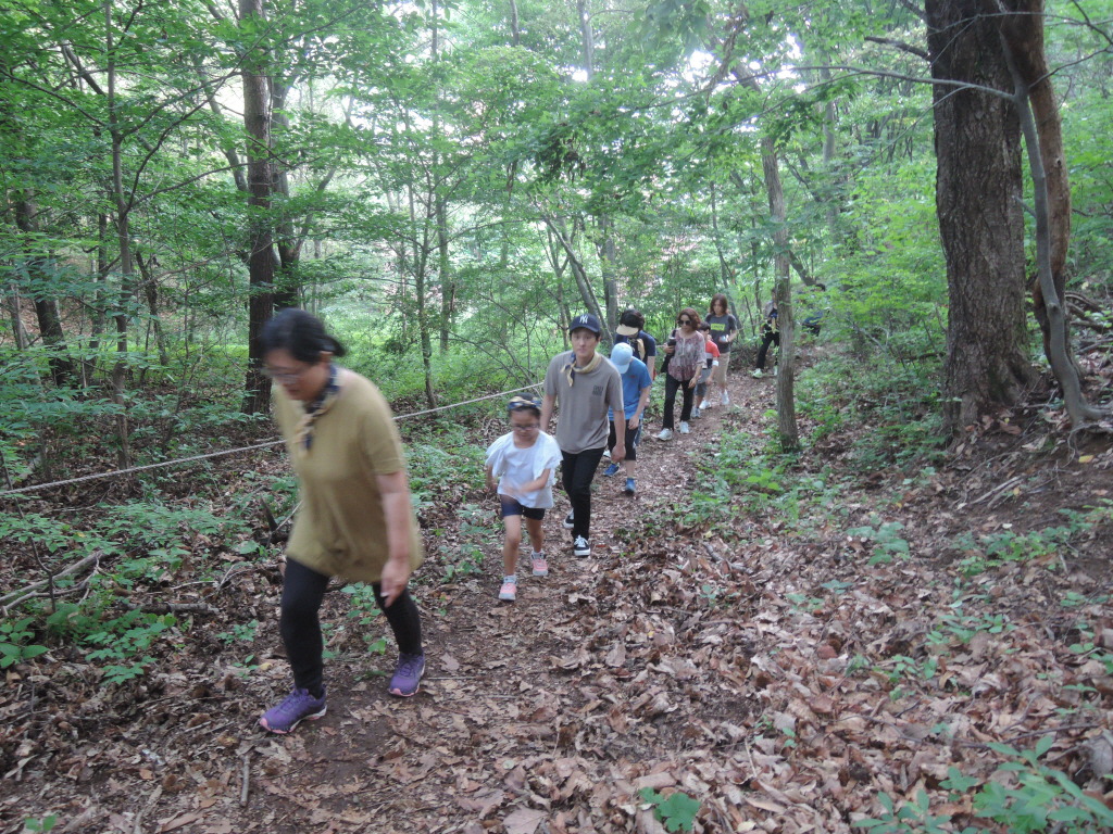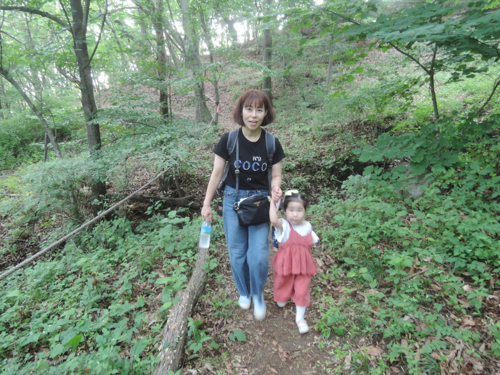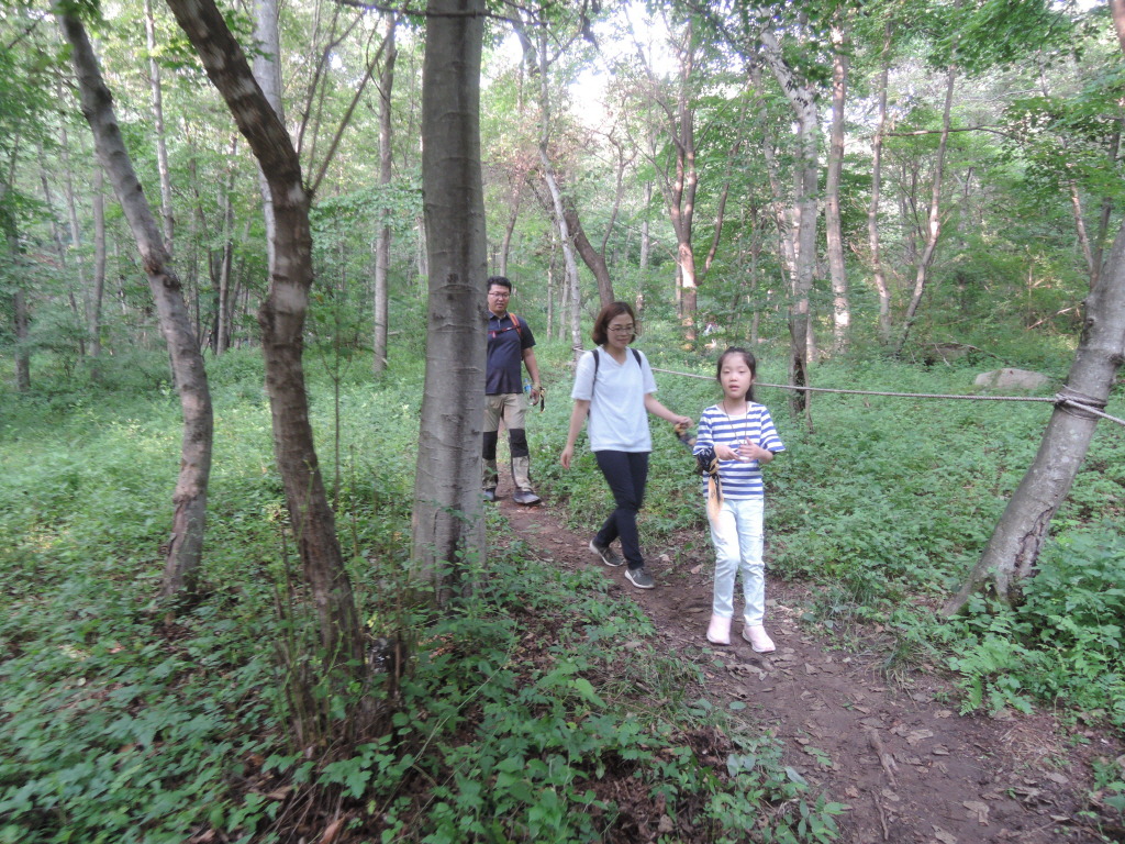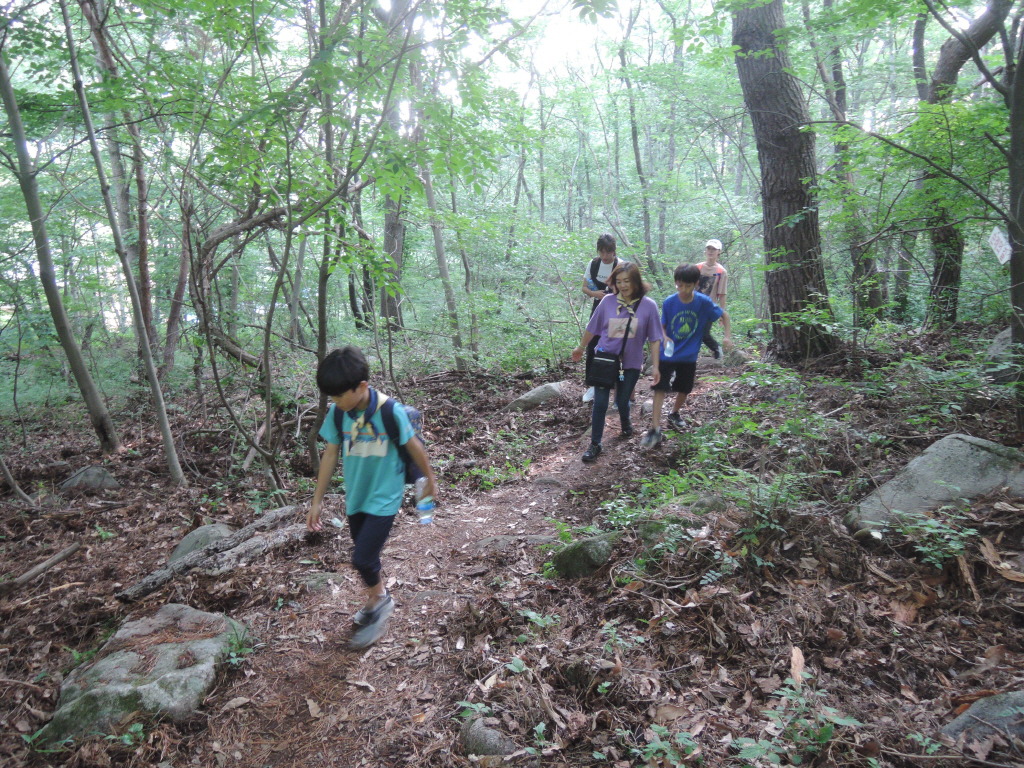 대가족이 걷고 있었습니다. 가족들과 숲길을 걷는 소중한 시간임을 가늠합나다.