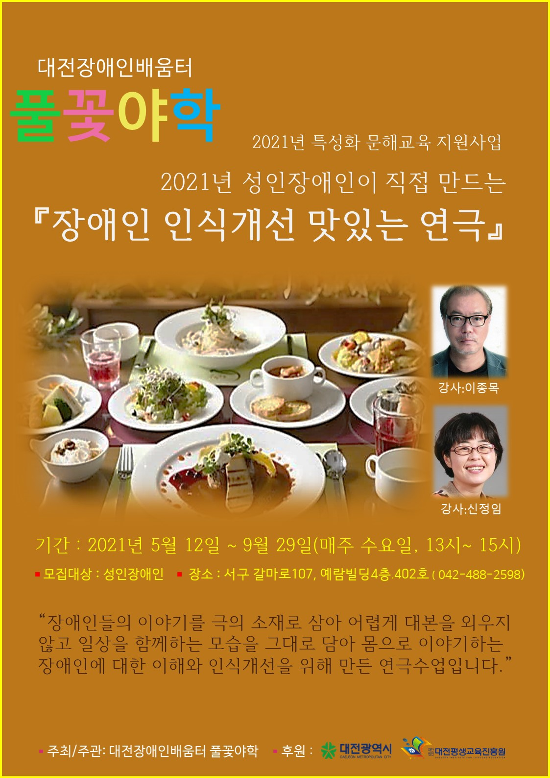 "장애인들의 이야기를 극의 소재로 삼아 어렵게 대본을 외우지 않고 일상을 함께하는 모습을 그대로 담아 몸으로 이야기 하는 장애인에 대한 이해와 인식개선을 위해 만든 연극수업입니다"
