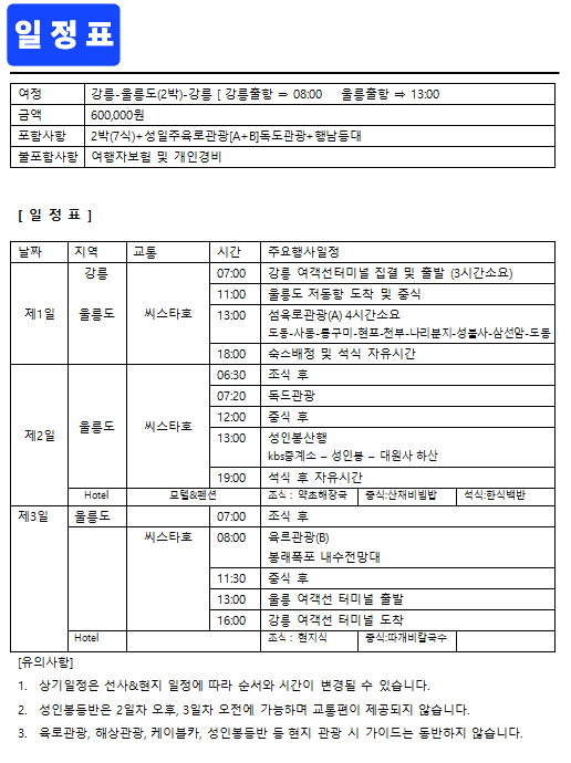 왕복차량비. 독도 .식사7식 포함 입금계좌:카카오뱅크 3333362904851유창민(무산)