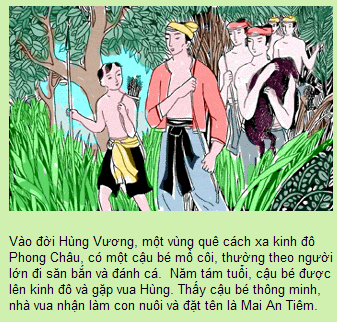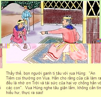 소년의 통민 함을 발견한 왕은 이 소년을 수양아들로 삼고, 이름을 마이 안 띠엠이라