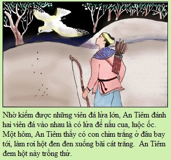 안띠엠은 큰 부싯돌을 발견, 이 돌을 서로 부딪쳐, 불을 만들고,