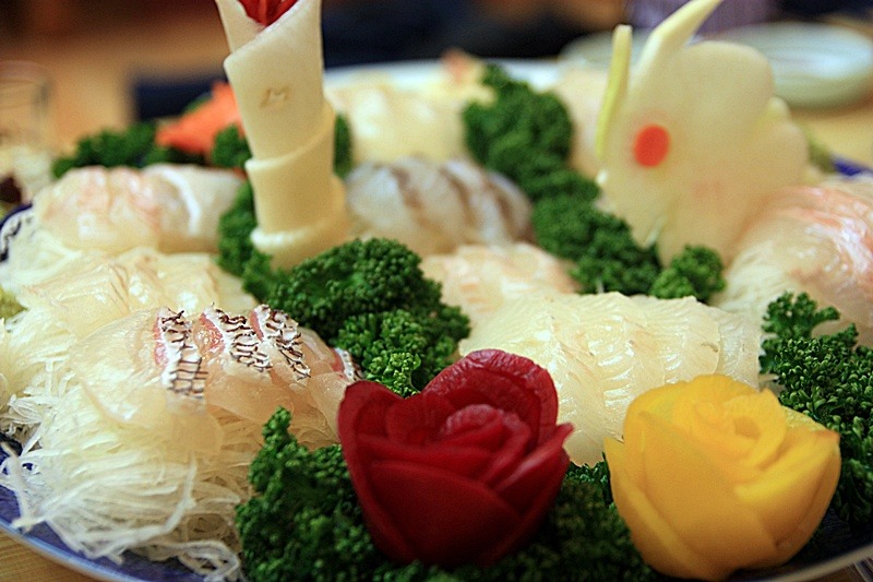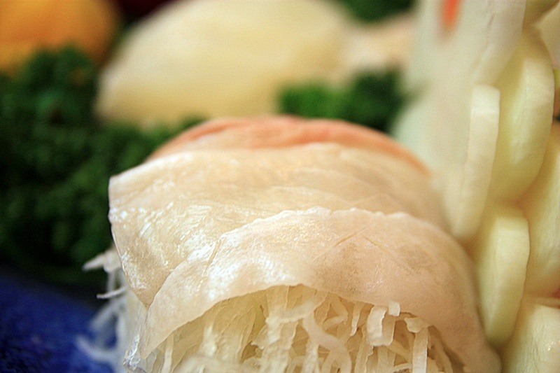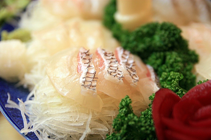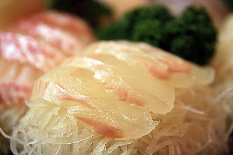 도미를 뜨거운물에 살짝 데친것