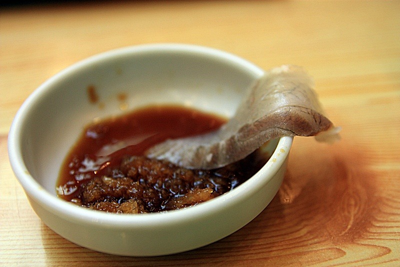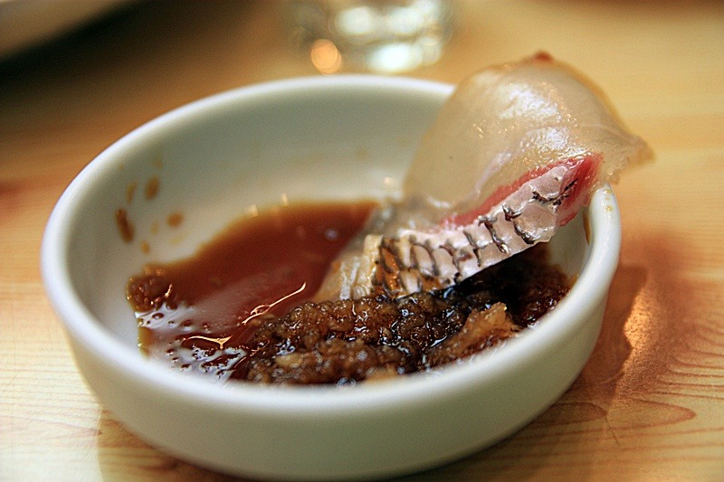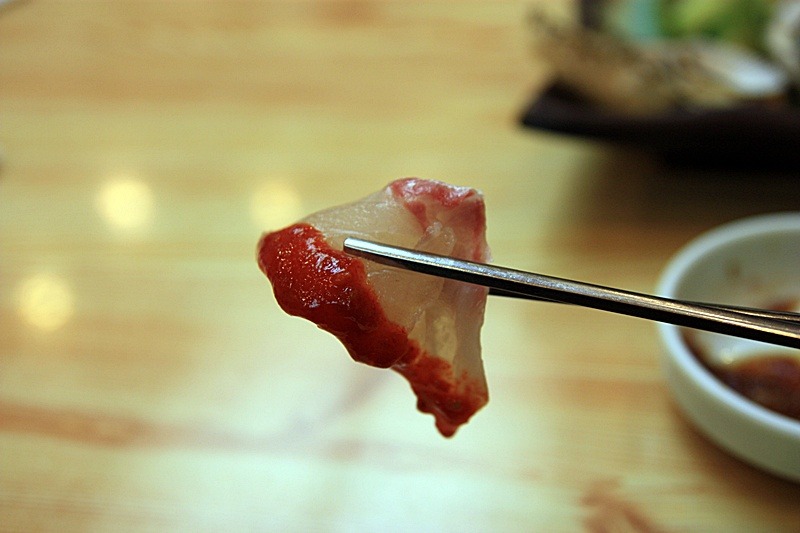 제일 먼저 도미뱃살을 집어 봅니다.