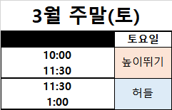 2023년 3월1일부터 육상단과 수업 시간표입니다.
