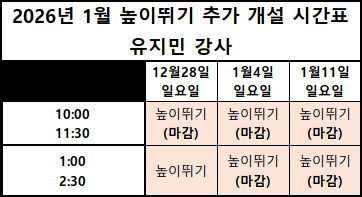 높이 뛰기 수업 시간 추가 개설