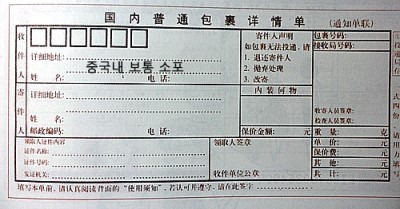 참고로 중국내에서만 가능한 보통 소포 보내는 법을 소개 합니다.
