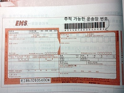 국제 소포를 보내기전에 우체국에서 위에 사진과 같이 운송장카드를 줍니다. 주소, 이름, 전화번호, 소포안에 들어있는 상품가격 등을 적습니다. 운송장 카드는 겹겹이 여러장으로 되어있기 때문에 한장은 보내는이 자신이 갖고, 나머지는 우체국이 가지고 있습니다. 물건을 보내고 한국 검색사이트에 운송장번호를 띄어쓰기 없이 입력하면 날짜, 시간, 장소 를 자세히 나타내며 운송장추적이 가능합니다.