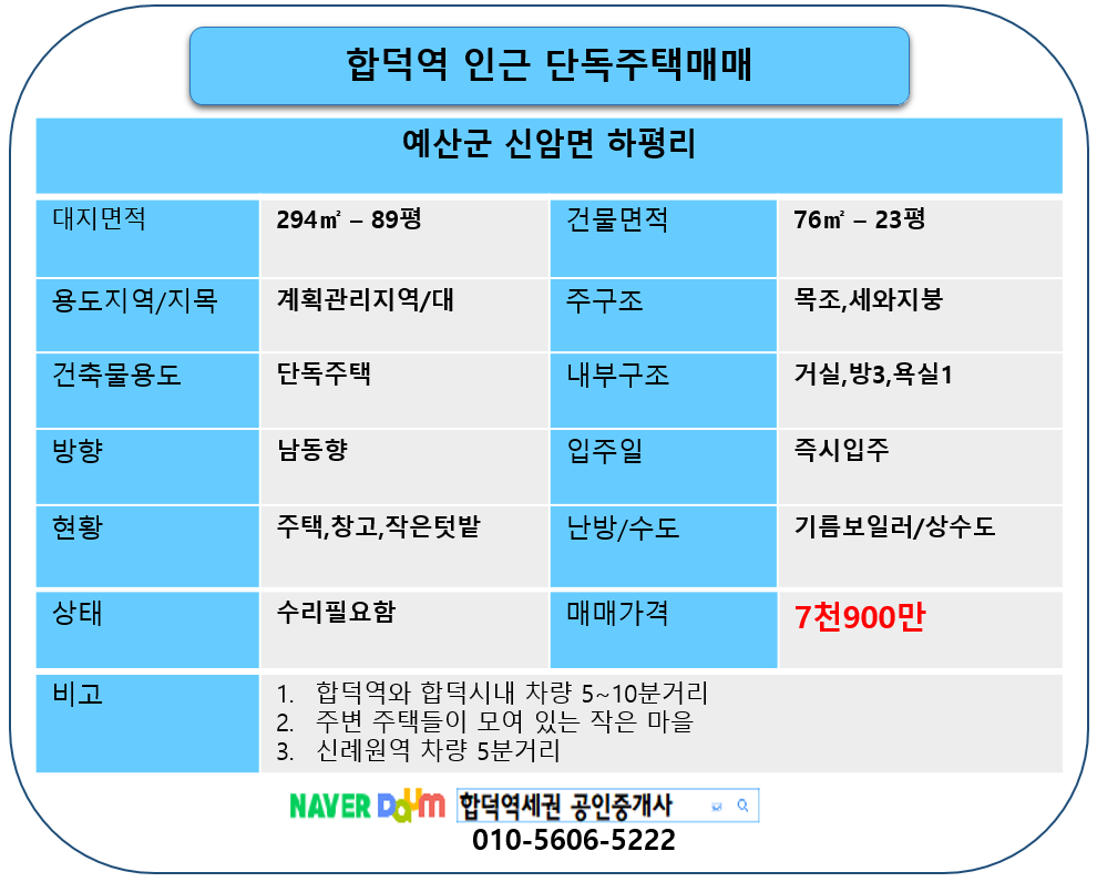트리플 역세권인 합덕역에서 3km, 병원,시장,학교등이 있는 합덕시내권에서 5km,