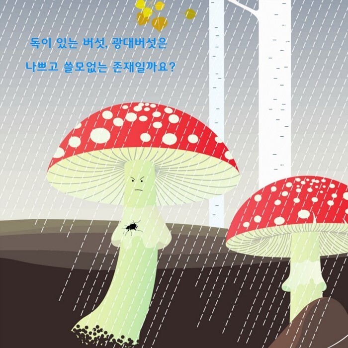 그래서 "때로는 차라리 눈에 띄지 않았으면 좋겠어. 하지만 나도 내가 특이하게 생겼다는 걸 알아. 난 정말 별나"라고 광대버섯이 하는 말이 공감하면서 나를 자책하기도 한다. "내가 그렇게 무섭고 나쁜 버섯일까?"
