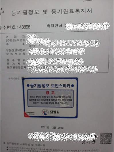 월요일날 등기접수했는데 금요일날 등기권리증을 받았습니다. 잉크가 마르기도 전에