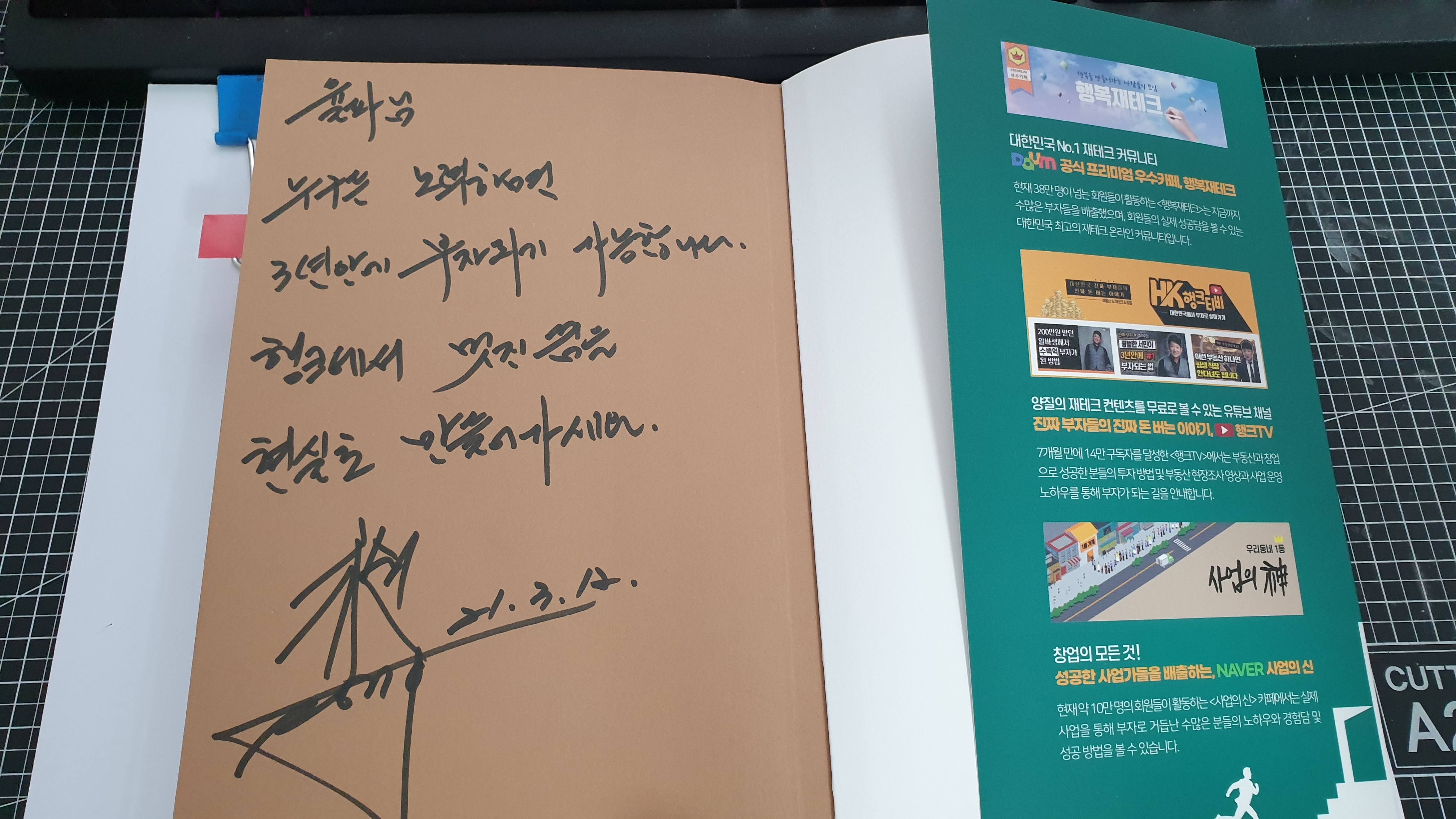 책의 앞과 뒤에 친필로..책 중간중간에도 꾸준함에 대한 당부의 말이 있다..
