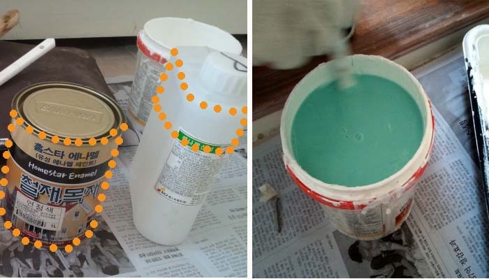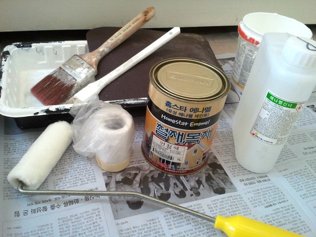 (참고로 동네페인트가게에서 철재용페인트 1L \11,000 에나멜신나 \3,000 에 구입했어요