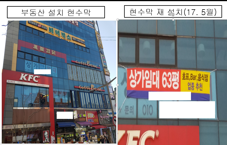 진작 처음부터 현수막을 창문 바깥쪽에 가시성 좋게 설치했으면 더 빨리 임대를 놓을 수 있었는데...
