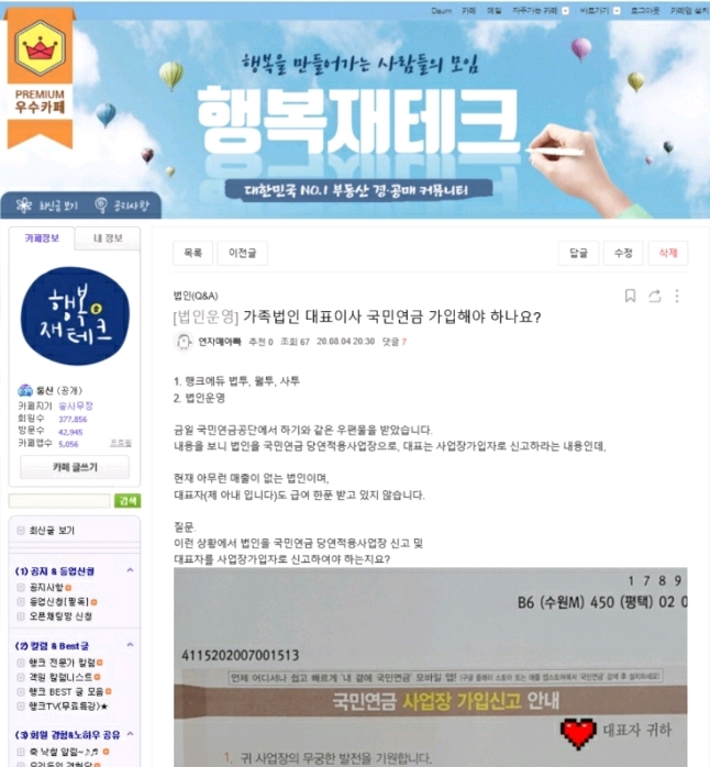 행복재테크 법인 Q&A에 질문을 남깁니다.