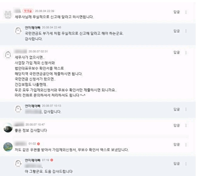 두번째는 법인은 설립한 것이 맞지만 현재 아무런 영업활동이 없는 법인인데 국민연금에 가입한다는 내용이었습니다.