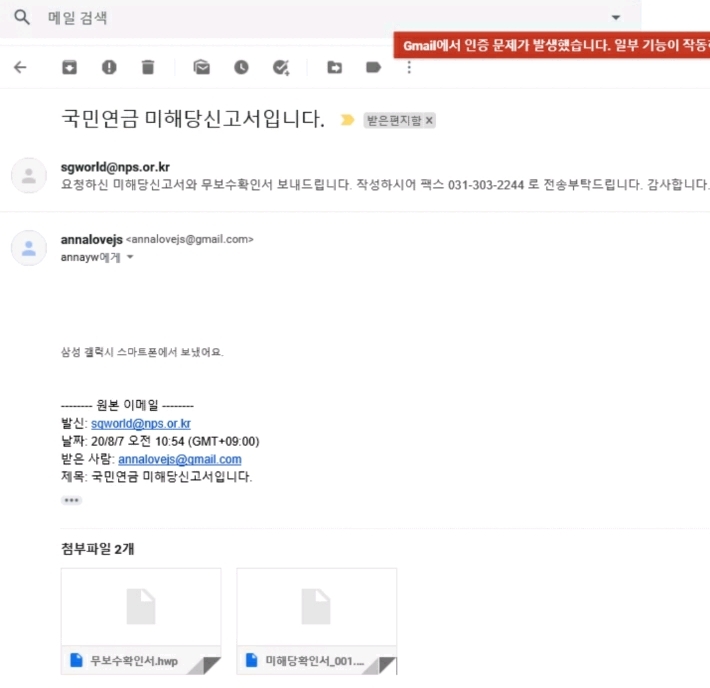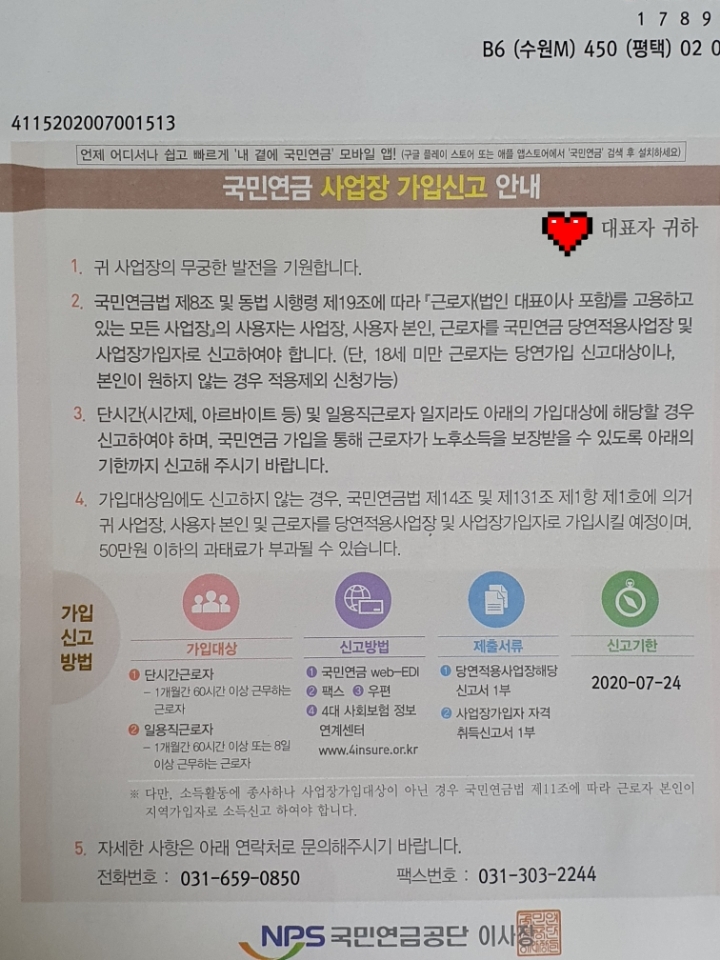 그런데 4일전에 국민연금공단에서 이런 우편물이 도착했습니다.