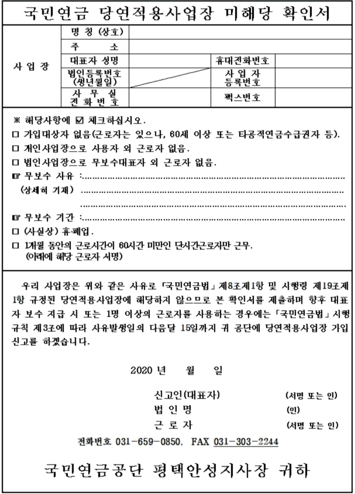 국민연금 가입하라고 우편물이 왔습니다. 무보수확인서와 가입제외신청서를 보내려고 하는데,