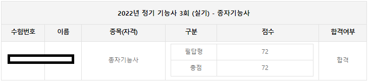 필답형 시험 처음에는 적응하기 조금 힘들었는데 기사, 산업기사, 기능사 필답형 시험들을 보면서 이제는 어느정도 적응도 되어 가는 것 같습니다. 점점 필답형 시험에 자신감도 생기고 요령도 많이 생긴 것 같습니다. 자격증에 대하여 한단계 성장한거 같아 기분이 좋습니다.