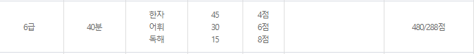 6급 까지는 평균 60점 합격이라 만만하게 생각하다가 큰일날뻔 했습니다.
