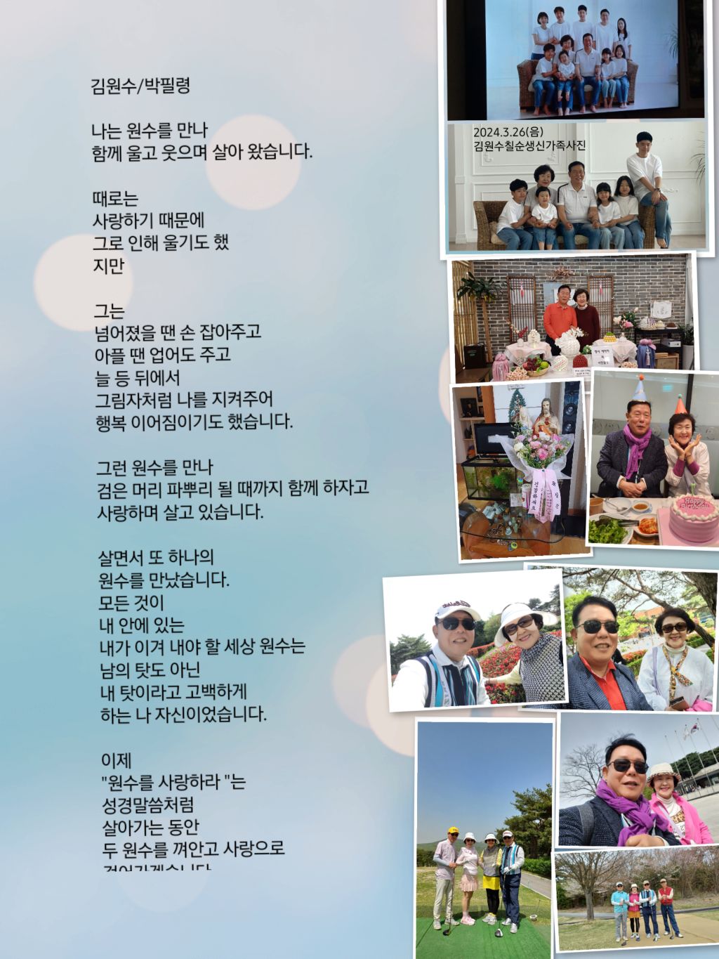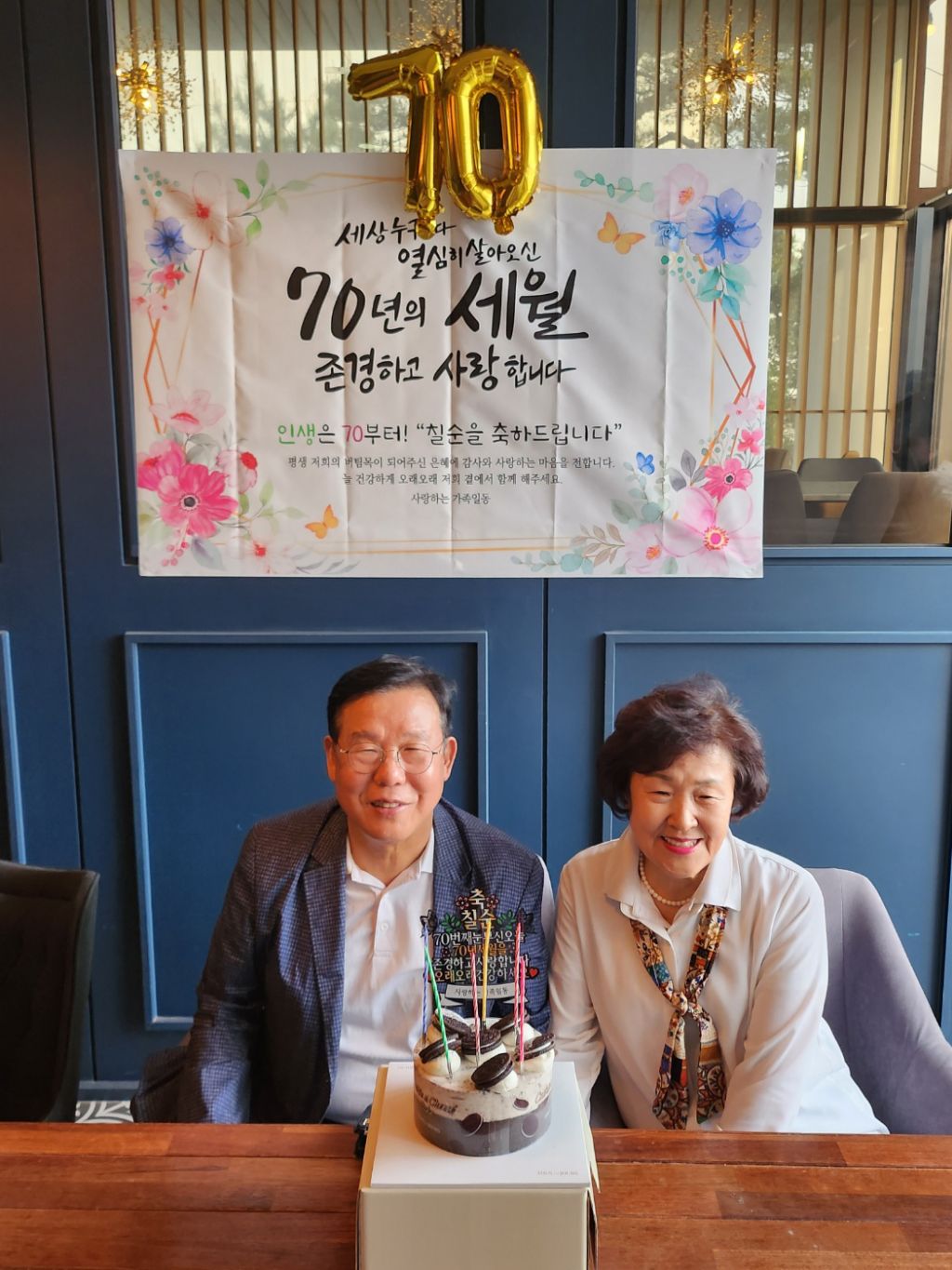 더욱이 며느리 로사의 건강회복과 더불어 맞이하는 칠순이 더욱 행복했으리라 생각하네. 진심으로 칠순을 축하하네.