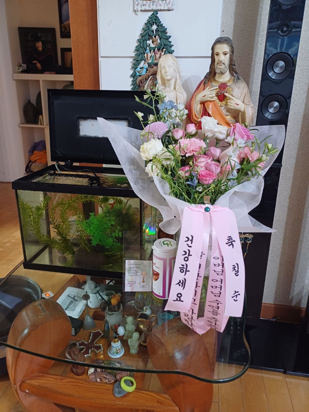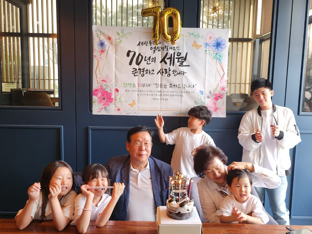 "축일과 칠순 축하식에서 손주들에 둘러싸여 축하받는 모습이 너무 아름답고 부럽습니다~~!!