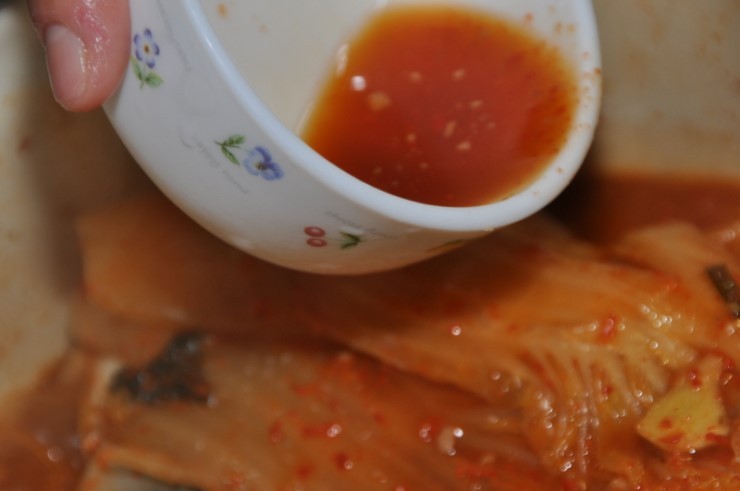 - 쌀뜬물을 부어주면되는데, 김치가 잠길정도만 넣으세요.