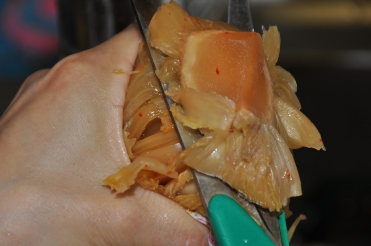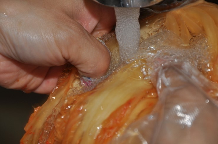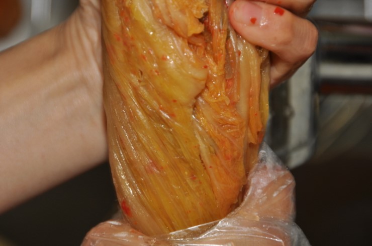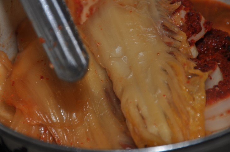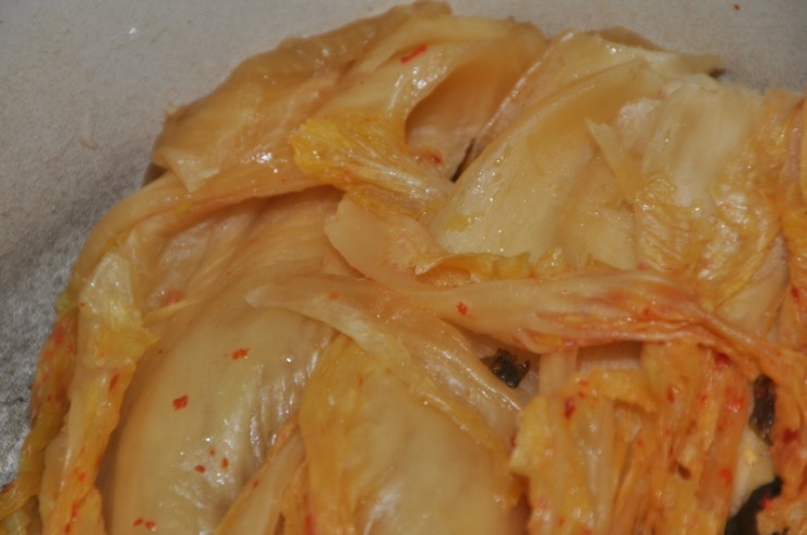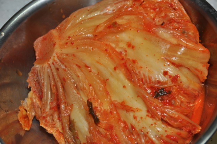 - 된장이 김치에 잘 배이게 사이사이 비벼주시구요..
