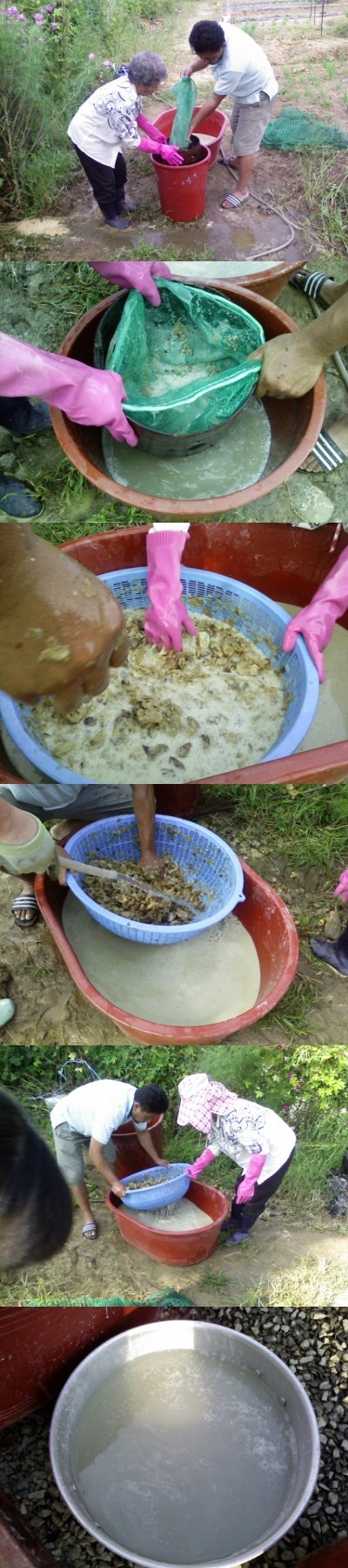 6. 가라앉았으면 윗물은 내버리고 다시 새물을 부어서 반복작업을 합니다.