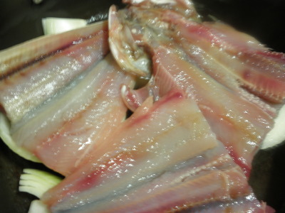 양파위에 씻어놓은 임연수를 한켜 얹고, 양념장을 골고루