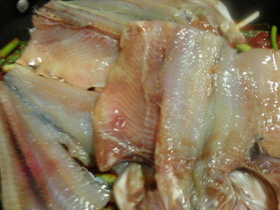 작은냄비여서, 생선을 반으로 잘랐어요.