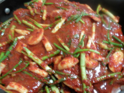 양념장을 골고루 얹은다음에 뚜껑을 닫고 중간불에서
