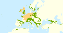 T. baccata is native to all countries of Europe (except Iceland), the Caucasus, and beyond from Turkey eastwards to northern Iran. Its range extends south to Morocco and Algeria in North Africa.[1] A few populations are also present in the archipelagos of the Azores[17] and Madeira.[18] The limit of its northern Scandinavian distribution is its sensitivity to frost, with global warming predicted to allow its spread inland.[1] It has been introduced elsewhere, including the United States.[19]