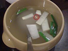 In 1996, Korea protested against Japanese commercial production of kimchi arguing that the Japanese-produced product (kimuchi, キムチ) was different from kimchi. In particular, Japanese kimchi was not fermented and more similar to asazuke. Korea lobbied for an international standard from the Codex Alimentarius, an organization associated with the World Health Organization that defines voluntary standards for food preparation for international trade purposes.[41][42] In 2001, the Codex Alimentarius published a voluntary standard defining kimchi as "a fermented food that uses salted napa cabbages as its main ingredient mixed with seasonings, and goes through a lactic acid production process at a low temperature", but which neither specified a minimum amount of fermentation nor forbade the use of any additives.[43] Following the inclusion of the kimchi standard, kimchi exports in Korea did increase, but so did the production of kimchi in China and the import of Chinese kimchi into Korea.[38]