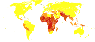 - ^ Black RE, Cousens S, Johnson HL, Lawn JE, Rudan I, Bassani DG, et al. (June 2010). "Global, regional, and national causes of child mortality in 2008: a systematic analysis". Lancet. 375 (9730): 1969–87. doi:10.1016/S0140-6736(10)60549-1. PMID 20466419. S2CID 27812760.