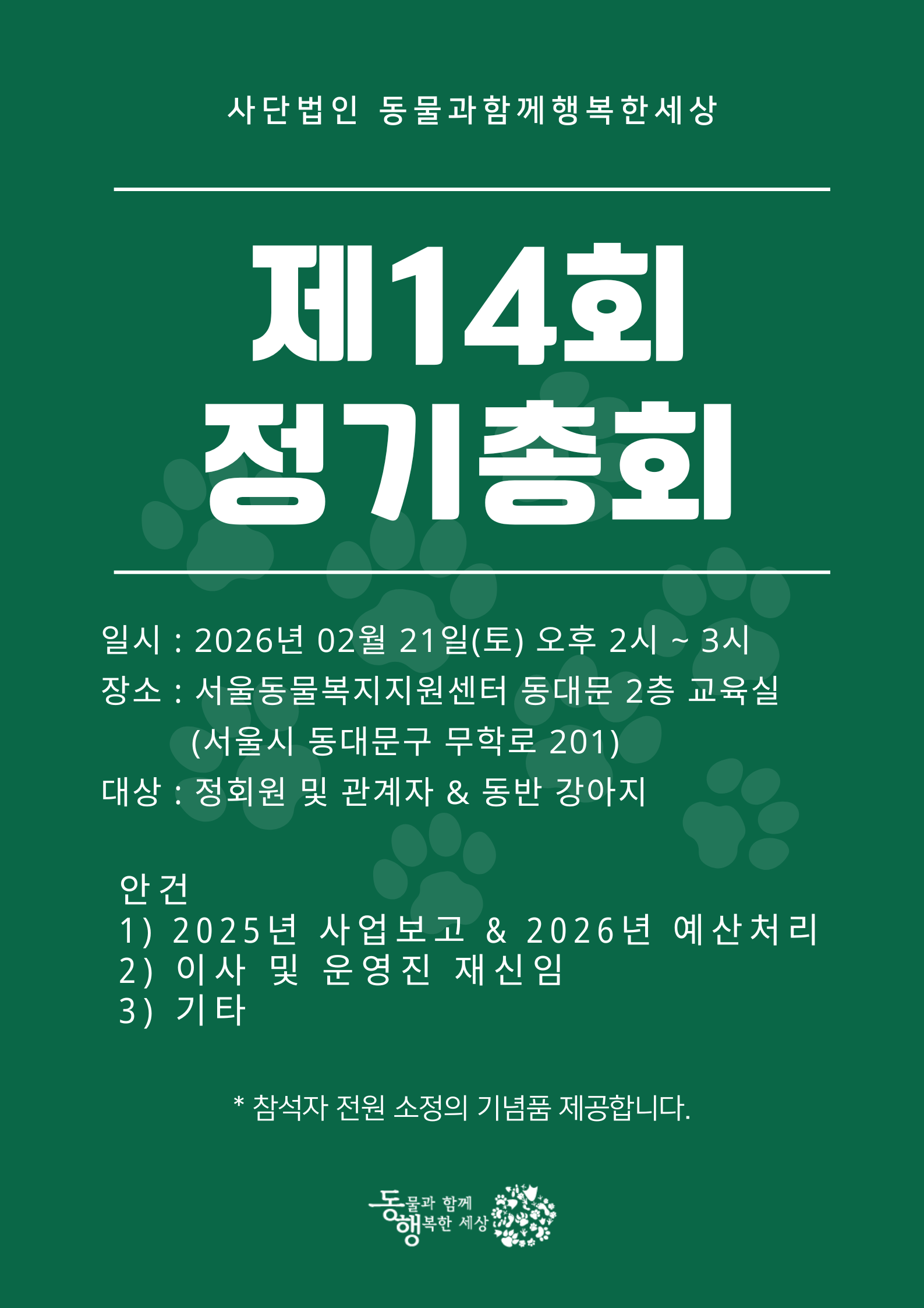 이번 정기총회는 정회원(후원 4년 이상) 또는 관계자분들을 대상으로 진행됩니다.