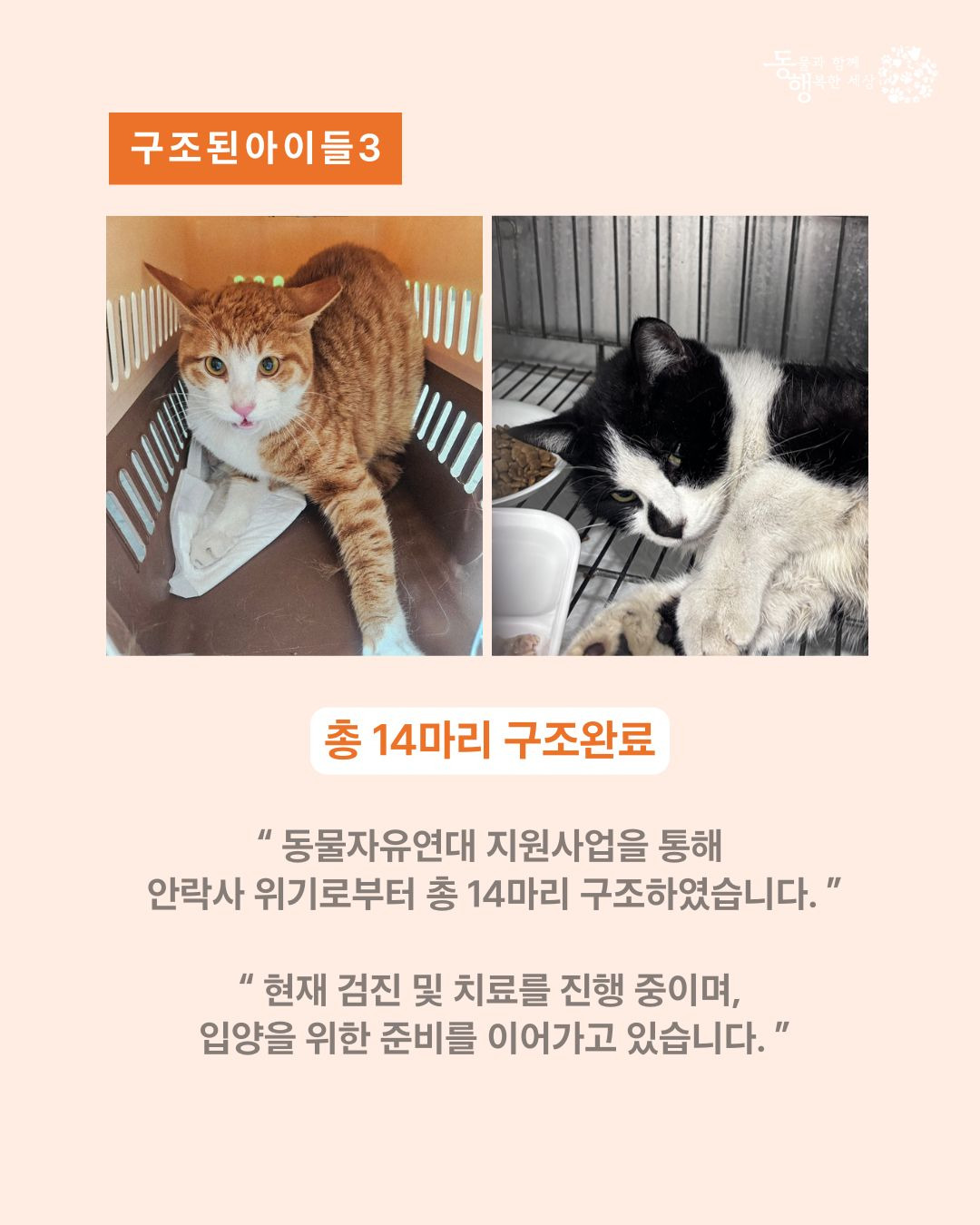 총 14마리의 아이들을 구조할 수 있었습니다.