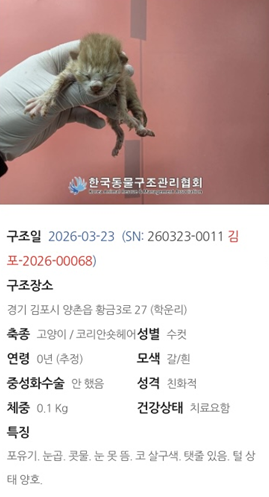 [26동행11] 가가/코리안숏헤어/수컷/추정나이26.03.20/0.1kg 작성자동물과함께행복한세상|작성시간26.04.05|조회수28 목록 댓글 1 글자크기 작게가 글자크기 크게가 다음검색 현재 게시글 추가 기능 열기 북마크 공유하기 신고 센터로 신고 댓글 댓글 1 댓글쓰기 댓글 리스트 해당 댓글은 작성자와 운영진만 볼 수 있습니다. 댓글 전체보기