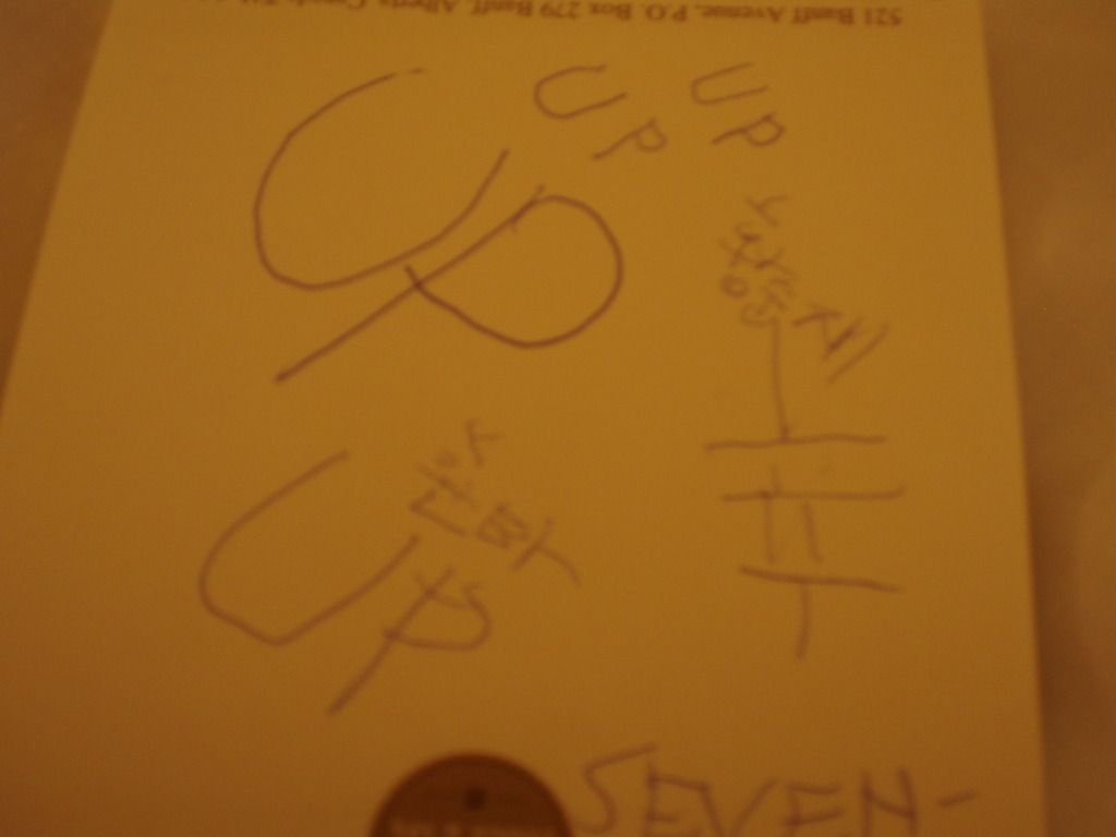 UP UP을 써댄다. 척 보아하니 7UP (미국식 사이다 상표)을 사달라는 이야기이다.
