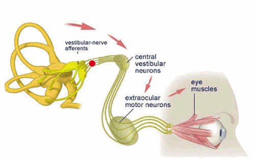 이렇게 안구가동 근육들의 불가동의 직접적인 원인은 전정감각 손상입니다. 눈이야말로 전정감각의 지배를 가장 많이 받는 감각기관이며 아래의 그림에서 보듯 시각적 정보는 아예 전정감각과의 통합을 기본으로 장착하고 뇌로 가게 되어 있습니다. 시각정보에 전정감각 기능이 보태지지 않으면 본 것에 대한 의미파악을 도저히 할 수가 없으며 본능이 시키는대로 자기가 원하는 것만 보게됩니다.