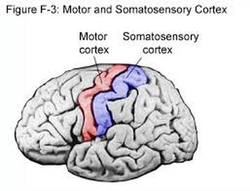 그래서 전두엽 말단에는 좌우를 가로지르는 두 줄의 머리띠가 놓여있게 되는데 하나는 동작을 만들어내기 위한 입력담당 체감각피질 Somatosensory Cortex이고 하나는 직접적 출력담당인 동작피질 Motor Cortex입니다.