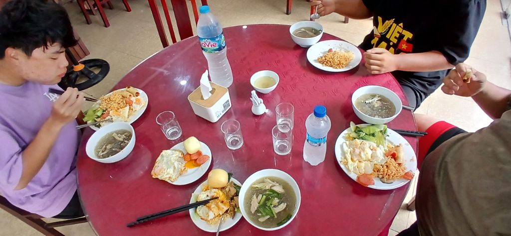 호텔에서 간만에 나온 뷔페식 아침이 녀석들을 신나게 먹게 만듭니다. 태균이는 허리가 더 굵어지고 배둘레가 더 커지고 있습니다. 싸고 맛있다고 식사 때마다 2-3인분을 먹어치웠더니 걷잡을 수가 없습니다. 저는 호텔에서 나오는 베트남 브라운커피가 너무 입맛에 맞는데 오늘은 쌀과자튀김까지 너무 맛있어 자꾸 먹게 됩니다.