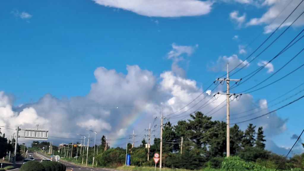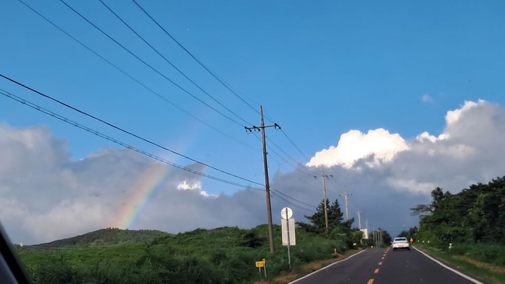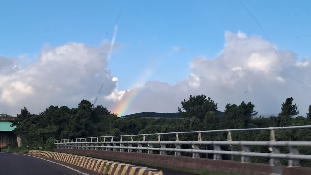 어제 서쪽에서 돌아오는 길, 화창함과 간헐적 소나기를 반복 속에 결국 커다랗게 하늘을 장식한 무지개! 그 화려한 희망처럼 완이에게 제발 큰 깨우침들이 있기를!