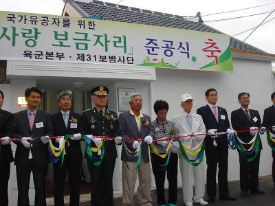 순천보훈지청(지청장 김한희)에서는 관내 주거환경이 열악한 6.25참전유공자 김효식옹(순천서 조곡동)의 주택을 육군 나라사랑 보금자리 사업과 연계하여, 2012. 6. 8(금) 육군 제31사단장, 순천보훈지청장, 지역주민, 지역 기관장이 참여한 가운데 준공ㆍ현판식을 가졌다.