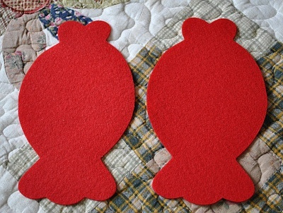 1. 펠트지를 물고기 모양으로 오린다. 한 색상 별로 2장씩 오린다.