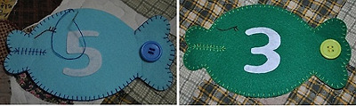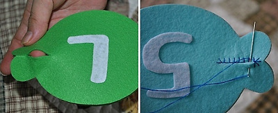 6. 물고기모양 펠트지 두 장을 마주대고 물고기를 꾀매준다.