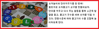 TIP 원모양으로 만들거나, 기차처럼 길게 붙여 놀이하면 된다. 단추 끼우는 연습과 더불어 숫자