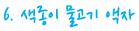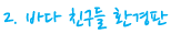 바다에 살고 있는 다양한 동식물 친구들을 표현했다. 모래사장과 바닷가, 그리고 하늘의 모습을 배경으로 만든 후, 머메이드지로 남자아이, 여자아이, 해, 갈매기, 물고기, 꽃게, 불가사리, 물풀, 물방울 등을 오려 붙인다.