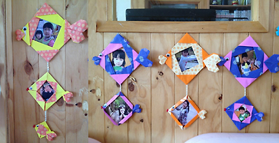 꽃무늬 색종이나 구김지로 예쁘게 접어 우리반 아이들의 사진을 넣어준다. > 액자접기 방법 보러가기