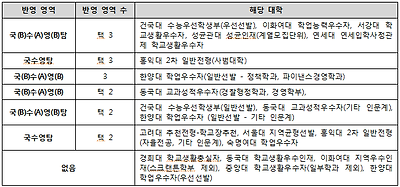 [표4] 정시에서 4개 영역을 반영하지 않는 서울 소재 대학 (2013학년도 기준)