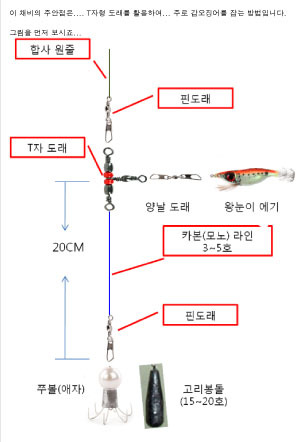 그리고 T자형 도래 10여개, 핀도래 10여개, 양날도래 10여개 있으면 한번 출조 가능합니다...